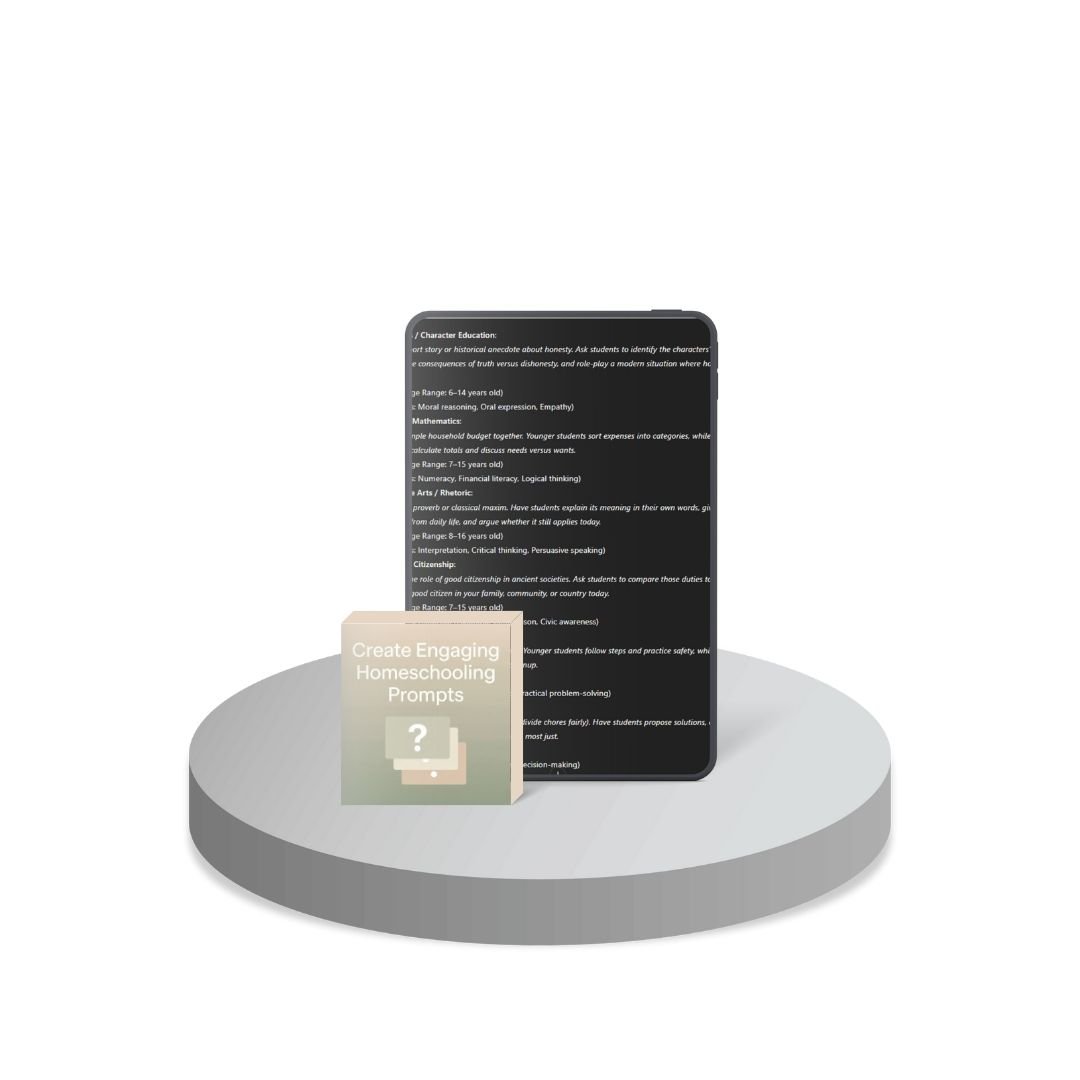 The prompts adapt to different learning levels, encourage exploration, and guide discussion naturally. You can use them for journaling, conversations, projects, or informal lessons, allowing learning to unfold step by step without rigid structure.